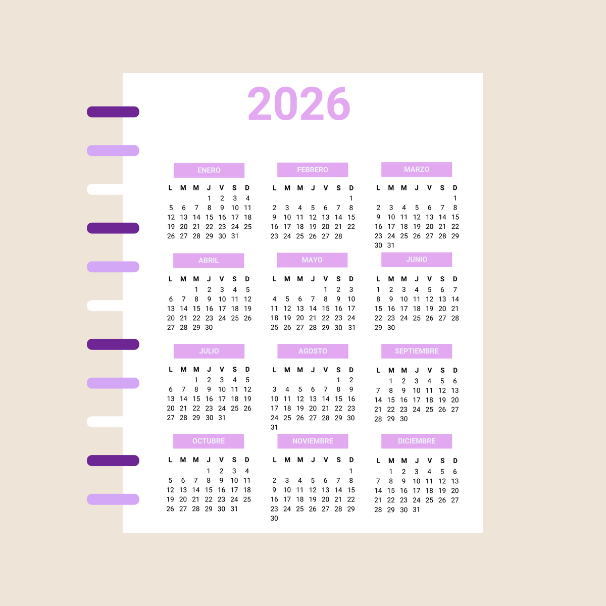 Incluye calendario 2026, Planner Anual y Horarios.