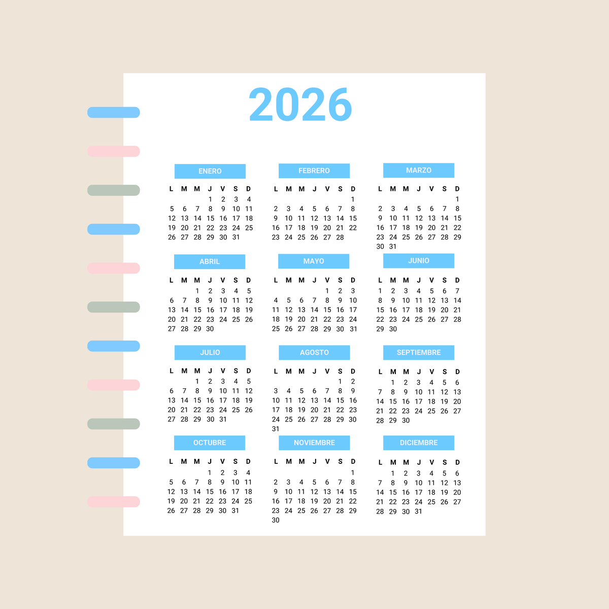 Incluye calendario 2026, Planner Anual y Horarios.