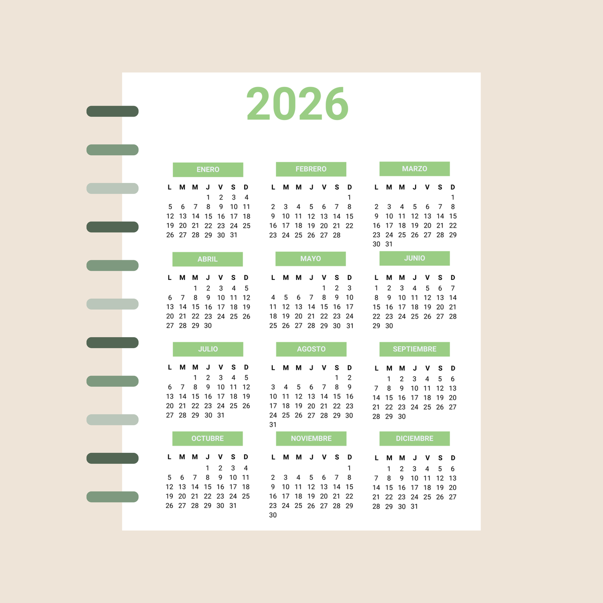 Incluye calendario 2026, Planner Anual y Horarios.