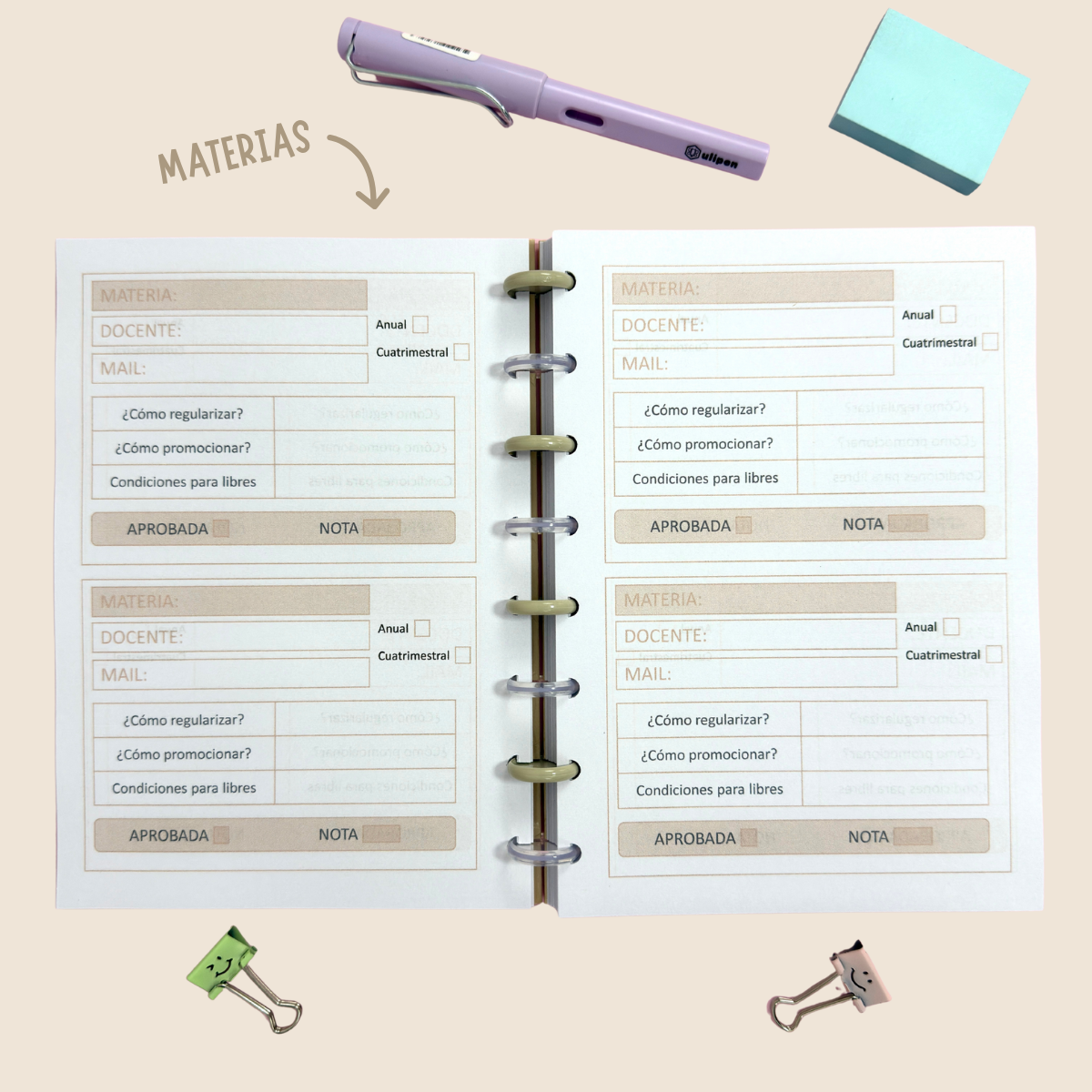 • Mood Tracker, Eventos / Entregas / Exámenes, Objetivos de mes, Lista de Tareas, Notas o Recordatorios