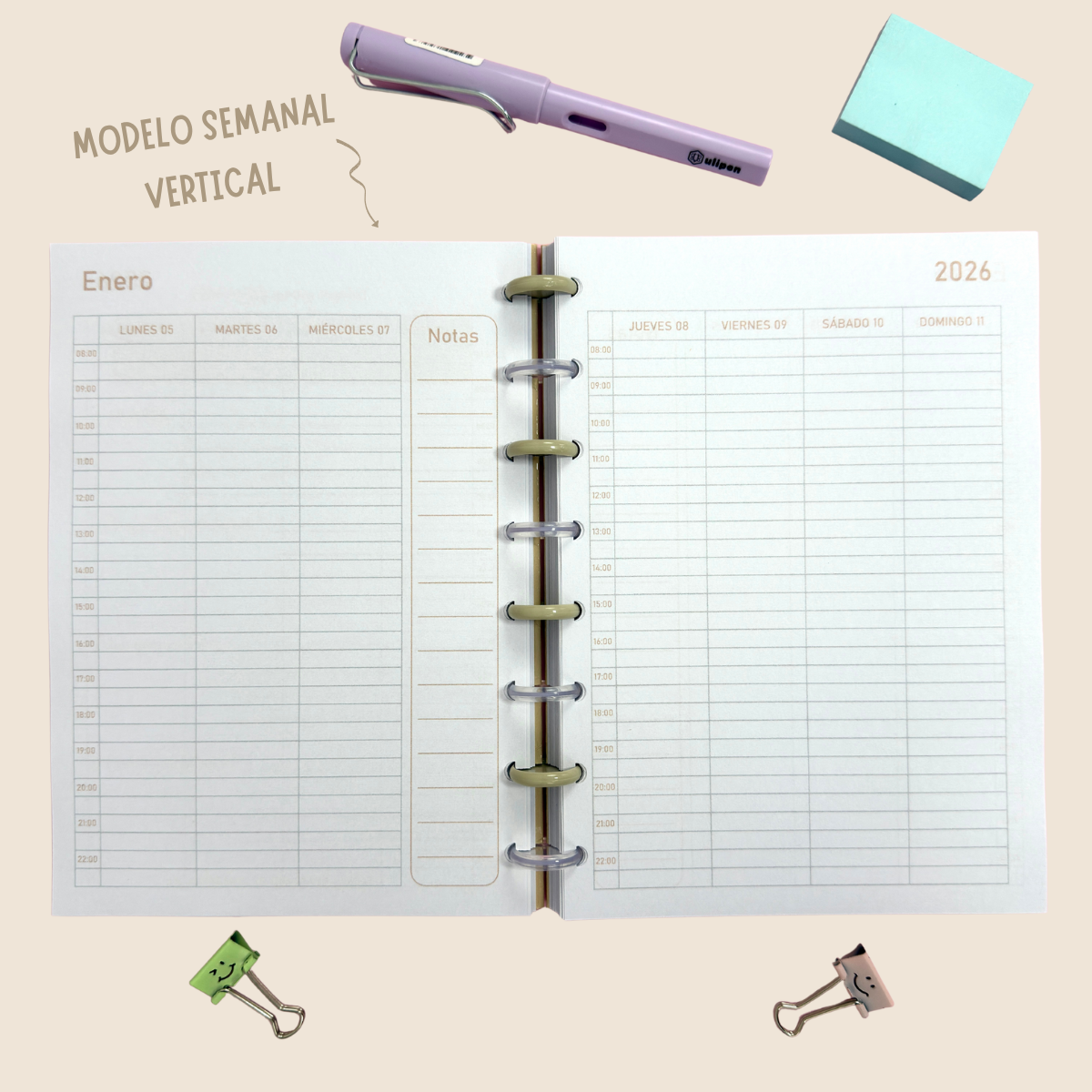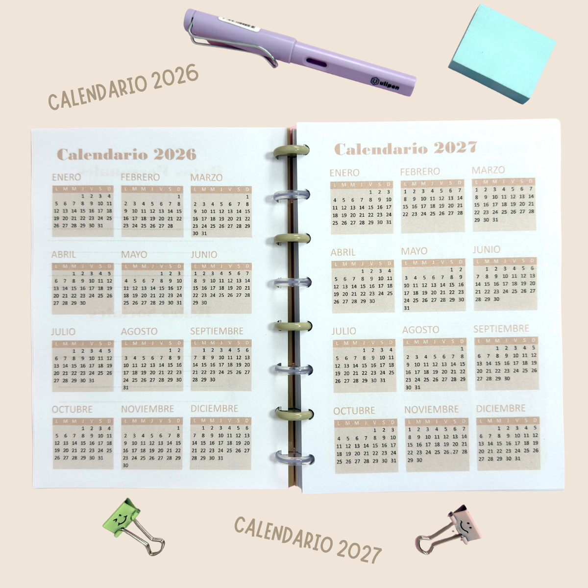 El mismo diseño de portada de la publicación aparte del color Rosa lo encontras en color Violeta, Beige y Aqua para que puedas combinar con el interior de la agenda
