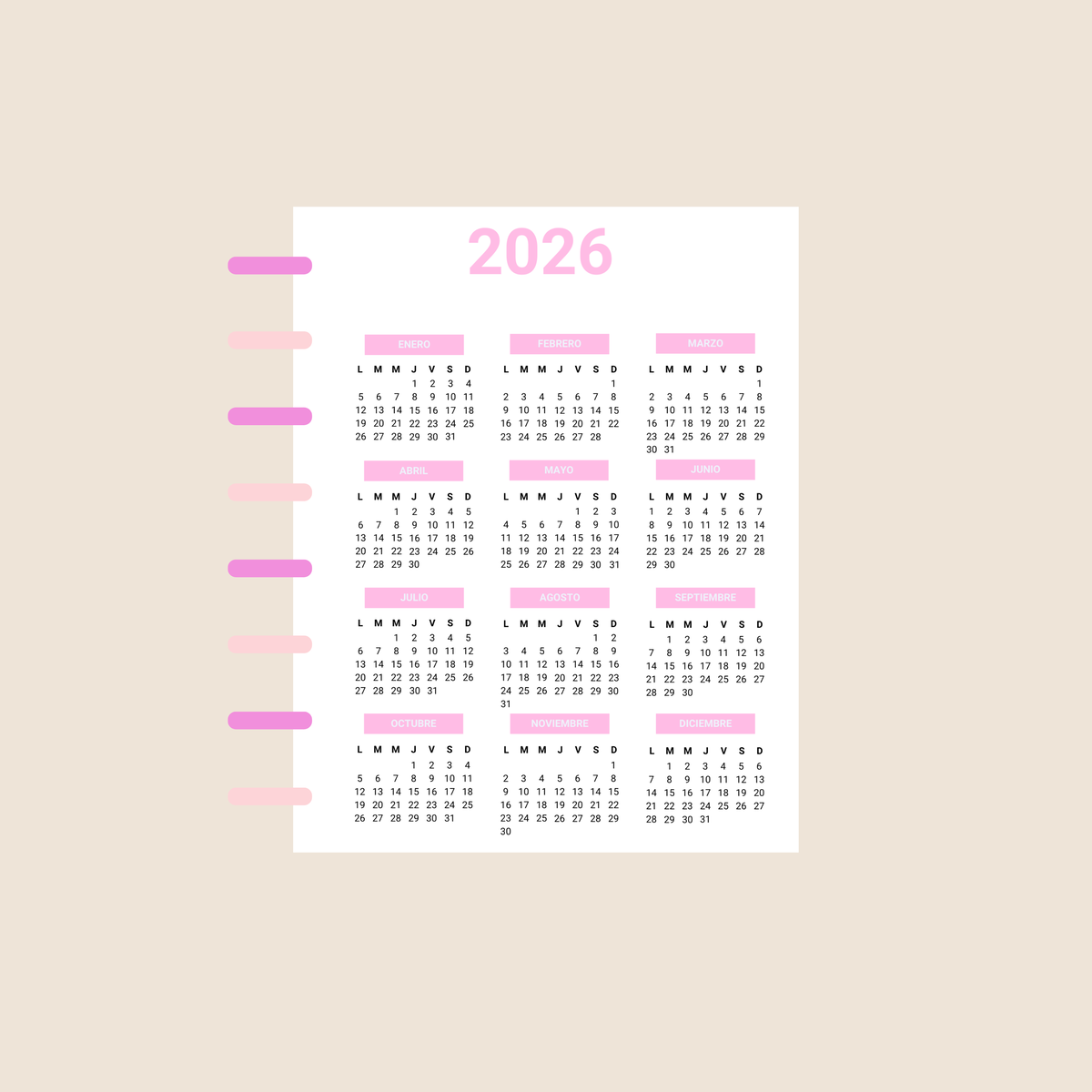Incluye calendario 2026, Planner Anual y Horarios.